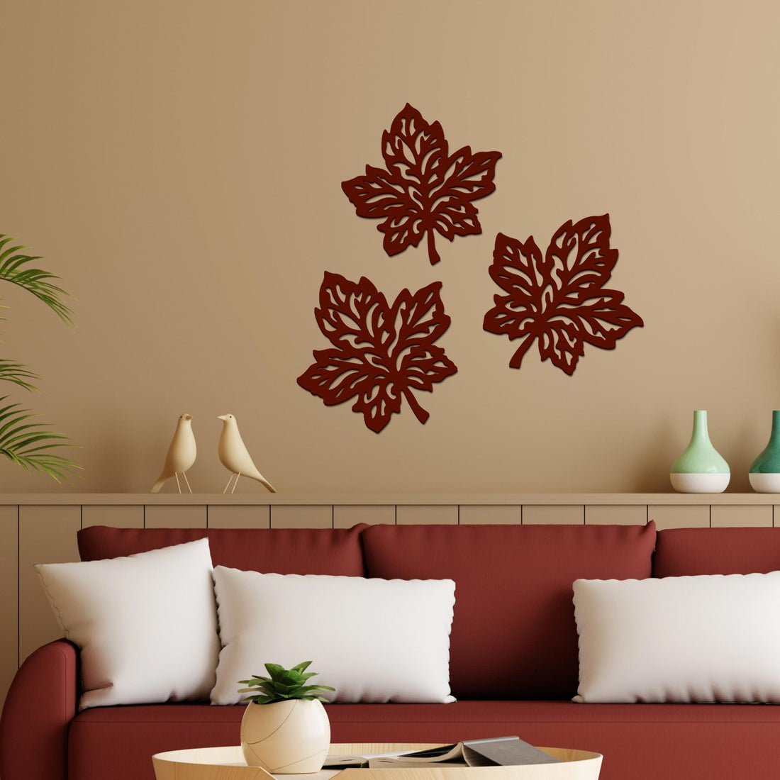 Beautiful Leaves in Brown Color Design Wooden Wall Hanging