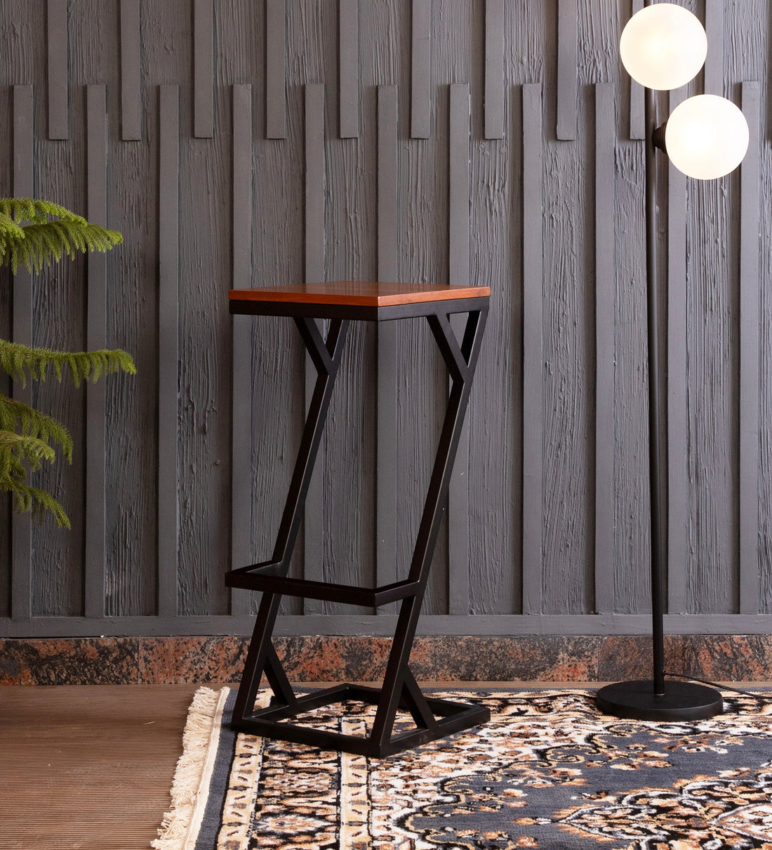 Modern Z Frame Metal Lounge Bar Chair with Wooden Seat