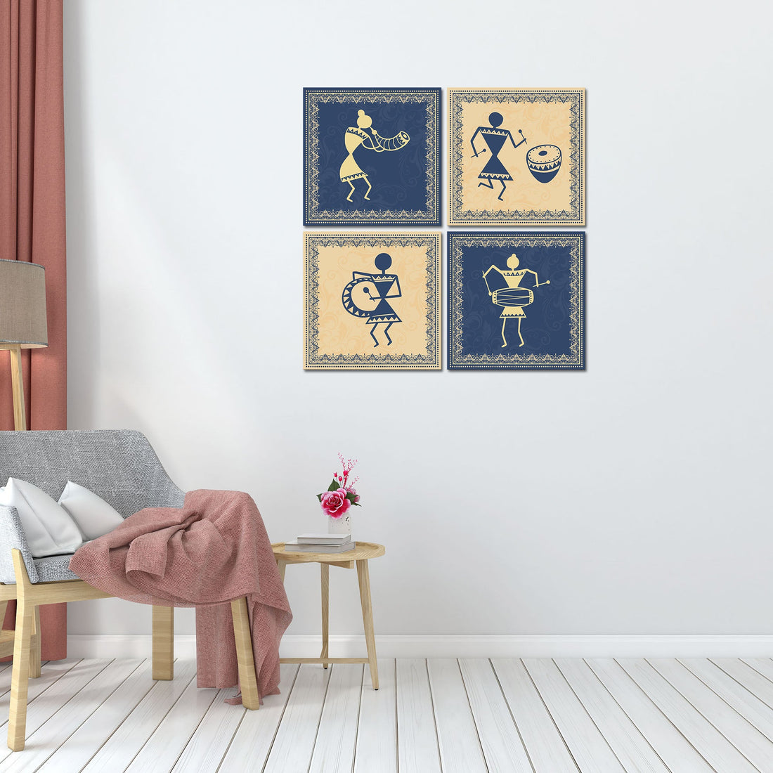 Warli Art Wall Hanging Painting, Set of 4