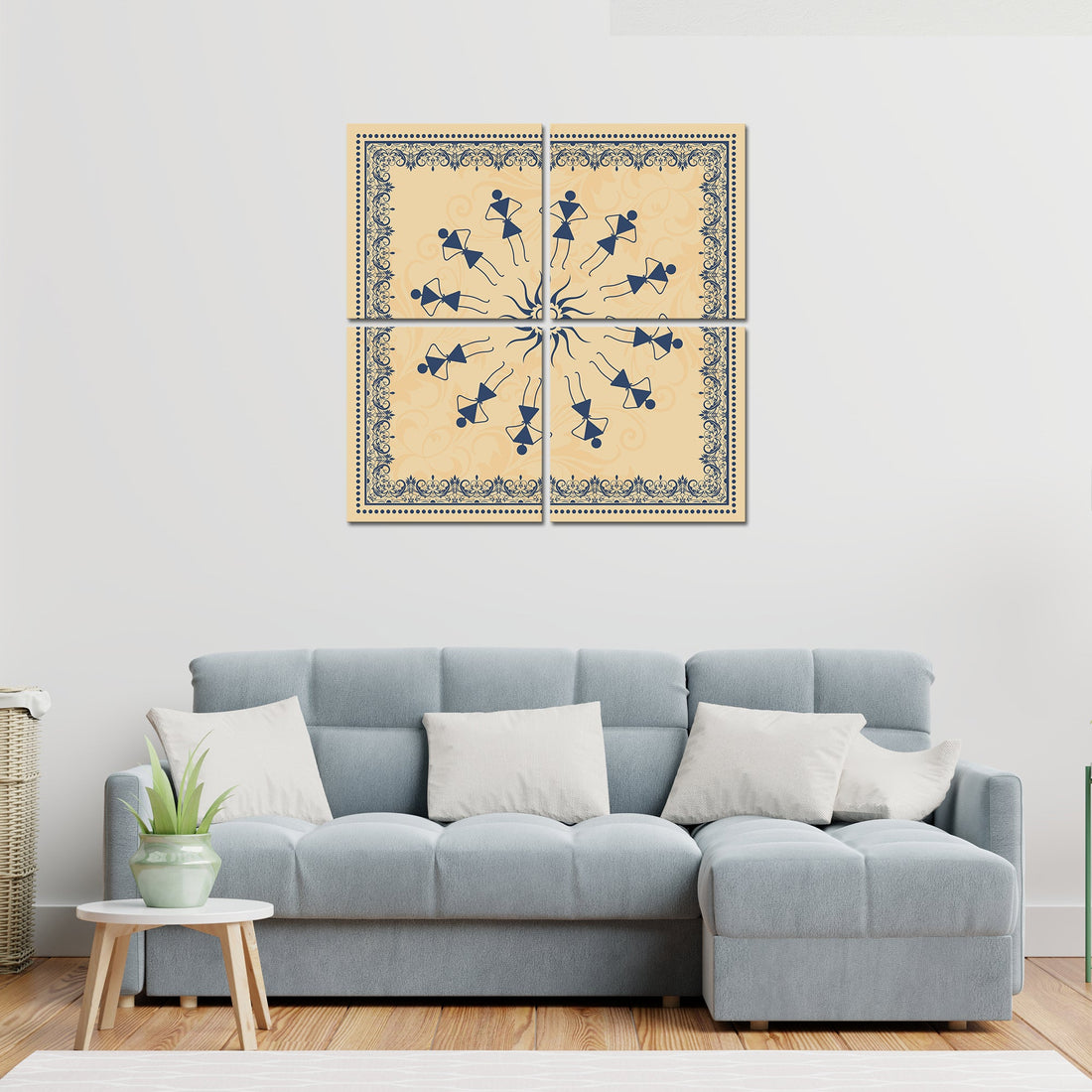 Warli Art Wall Hanging Painting, Set of Four Panels