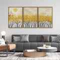 Abstract Forest Golden Leaf Art Premium Floating Canvas Wall Painting Set of Three