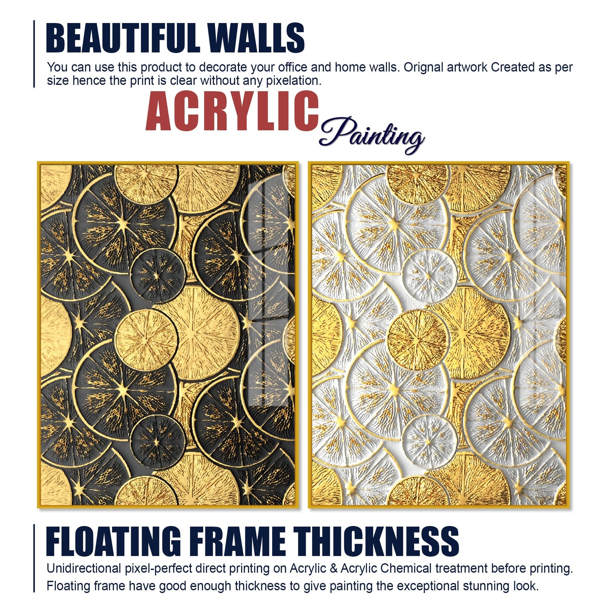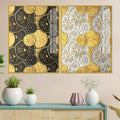 Abstract Golden Shapes Art Acrylic Floating Wall Painting Set Of 2