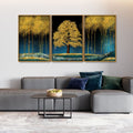 Beautiful Blue Sky and Golden Tree Floating Canvas Wall Painting Set of Three