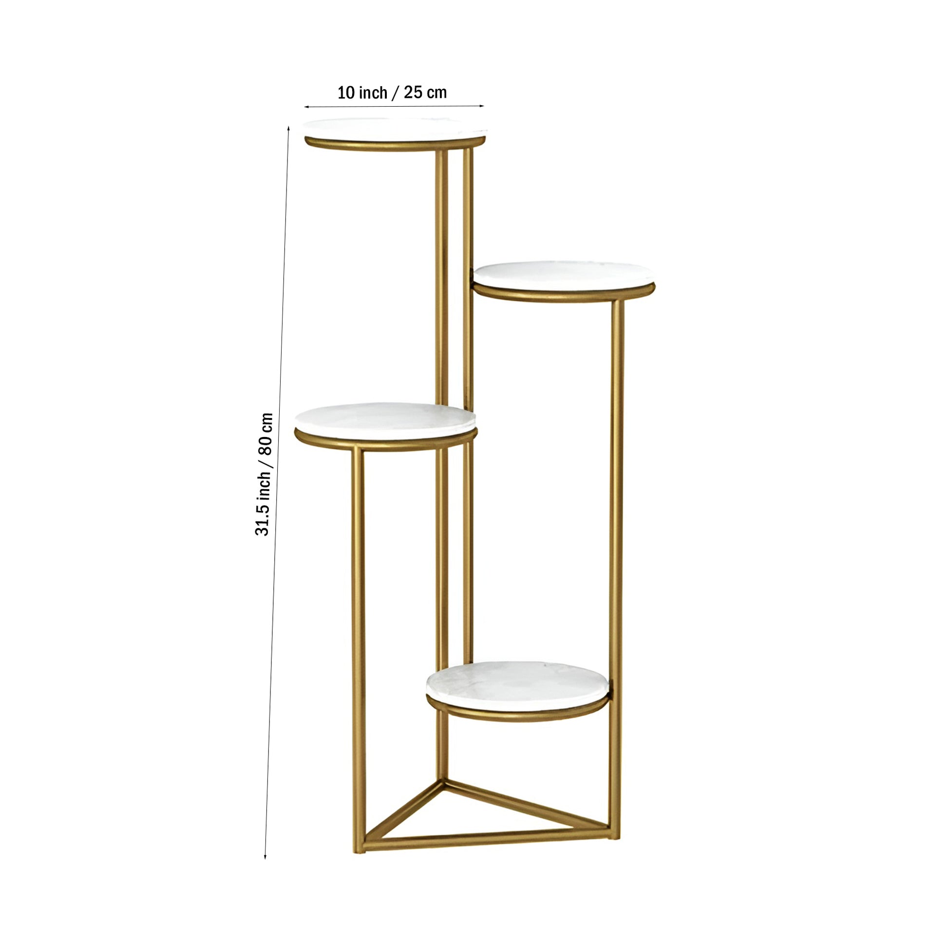 Beautiful Premium Looking Sturdy Metal Planter Stand With White Round Marble At Top - 4 Tier