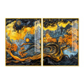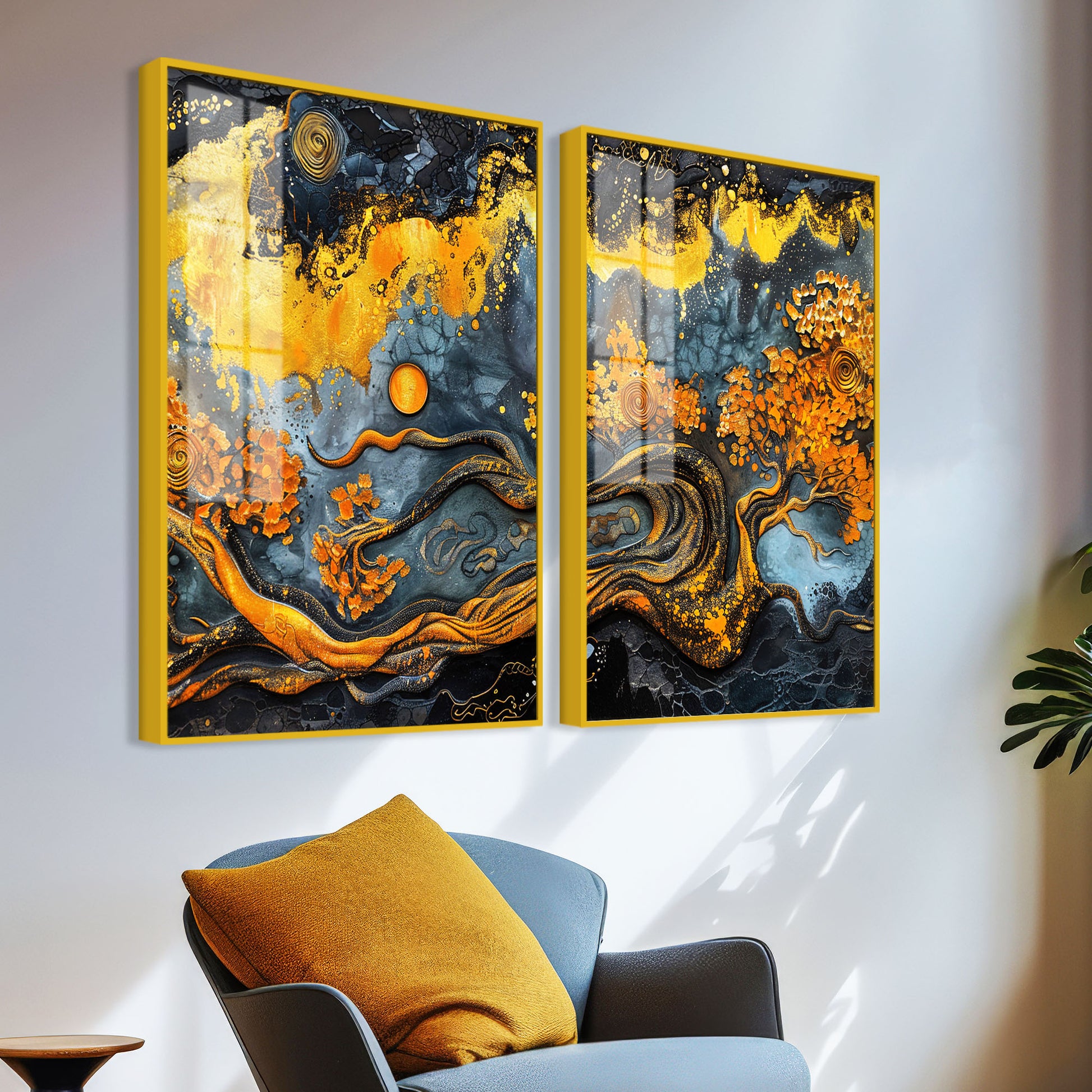 Beautiful Trees Branch Golden Textured Acrylic Art Floating Wall Painting Set of 2