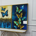 Blue and Golden Butterflies Acrylic Floating Wall Painting Set of 2