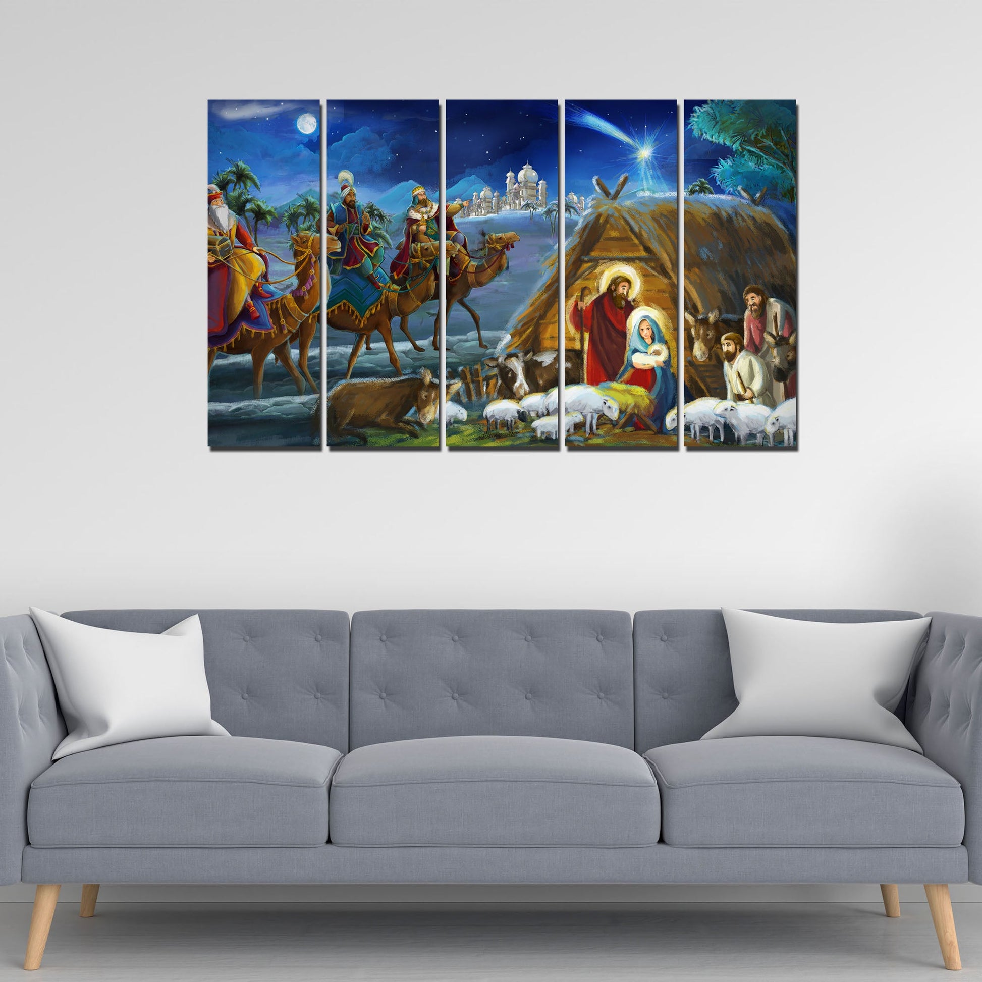 Three Kings and Holy Family Canvas Wall Painting 5 Pieces
