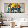 Classic and Royal Elephant with Golden Tusks Floating Canvas Wall Painting Set of Three