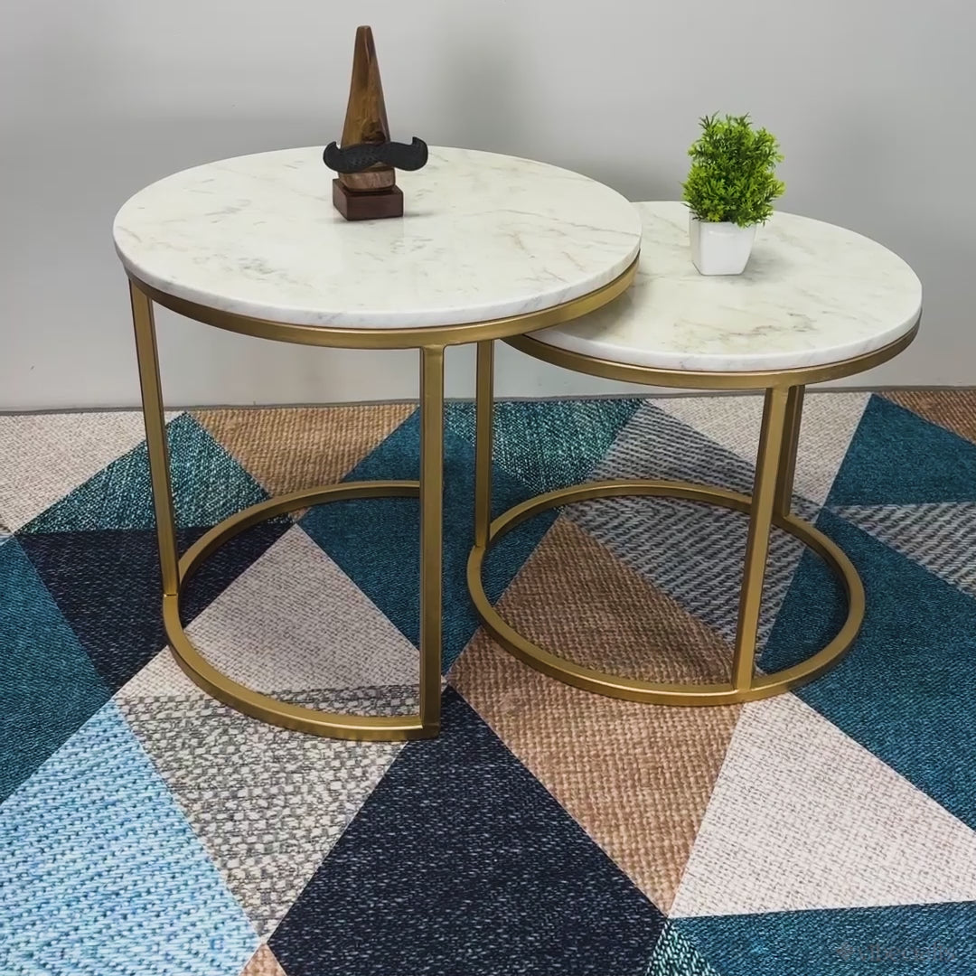 Classic White with Golden Metallic Finish Round Coffee Table Set of 2