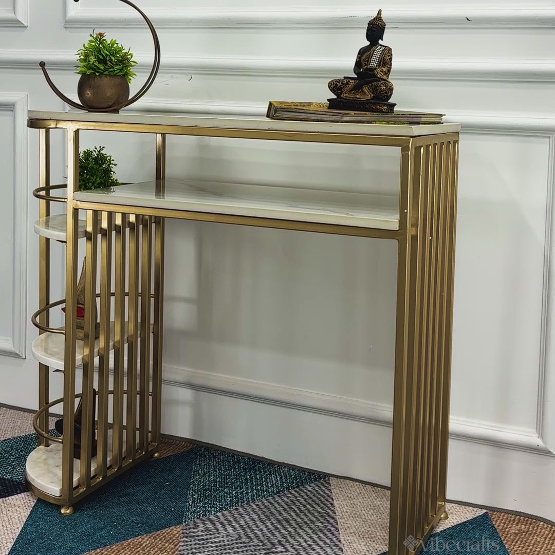 D-End 5 Tier White Marble Golden Console Table