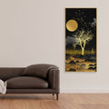 Dark Moon Light with Golden Birds Premium Canvas Wall Painting