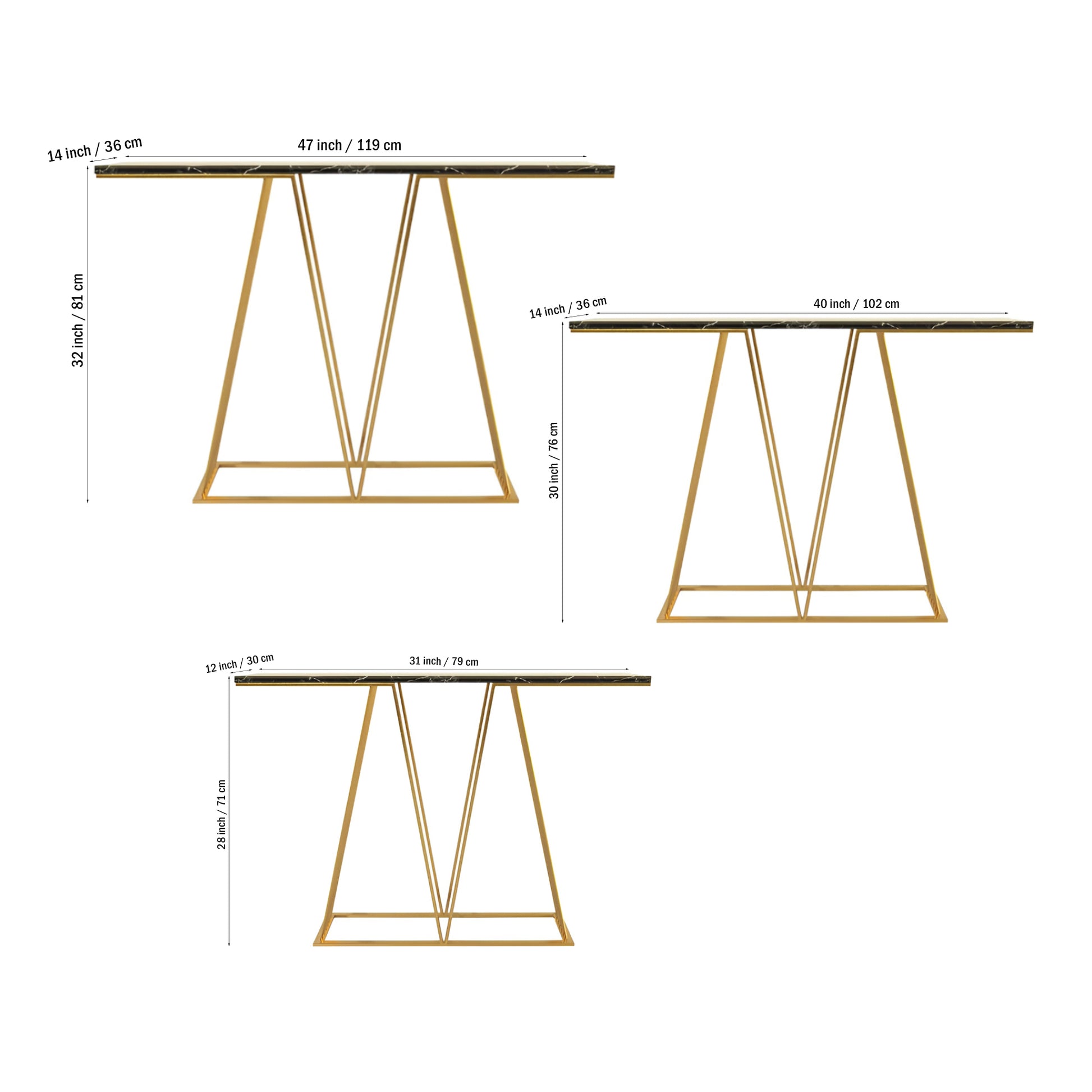 Designer Faux Black Marble V Shape Console Table
