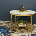 Designer Round Modern Center Table with White Marble Golden Metal Finish