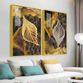 Detailed Leaves Pattern Acrylic Floating Wall Painting Set of 2