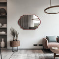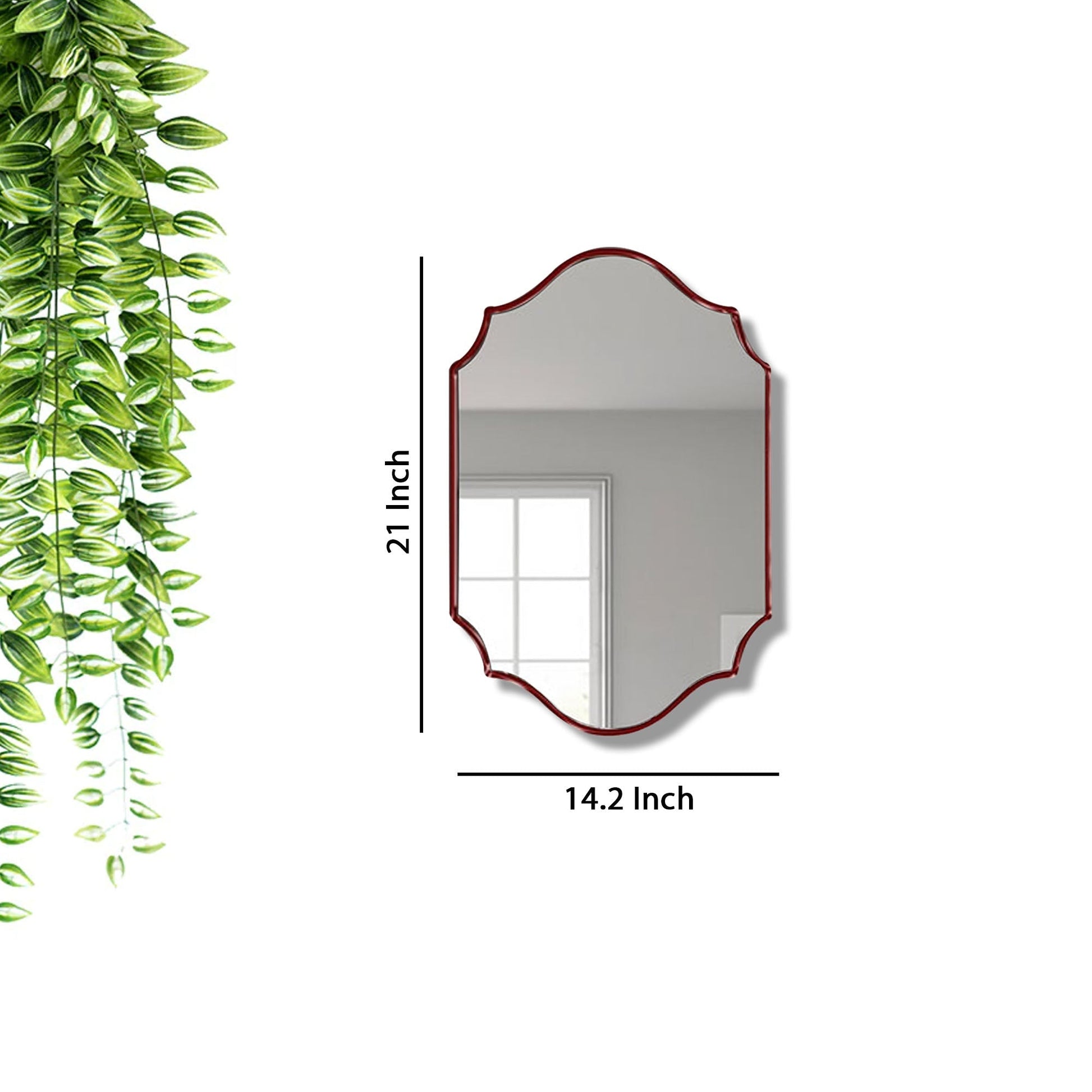 Elegant Irregular Quatrefoil Bathroom Decor Mirror with Red Wooden Finish