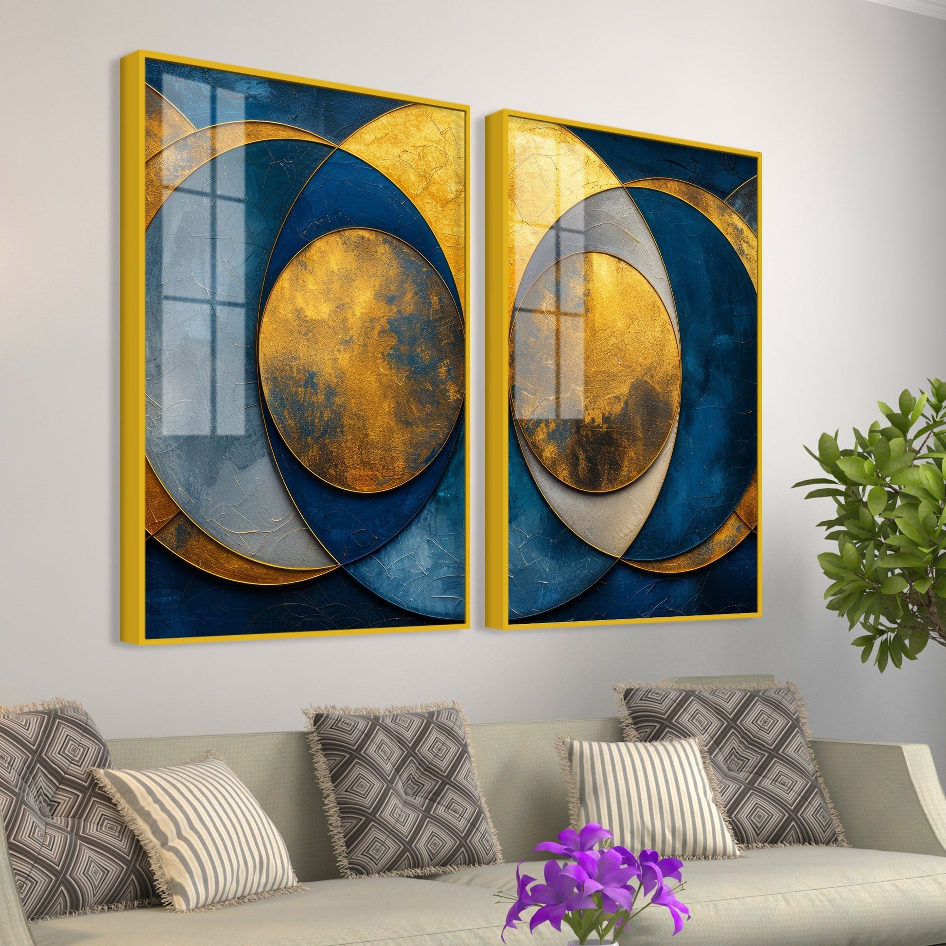 Golden Abstract Modern Circle Acrylic Floating Wall Painting Set of Two Pieces