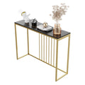Golden Metallic Rectangular Shaped Black Marble Designer Console Table