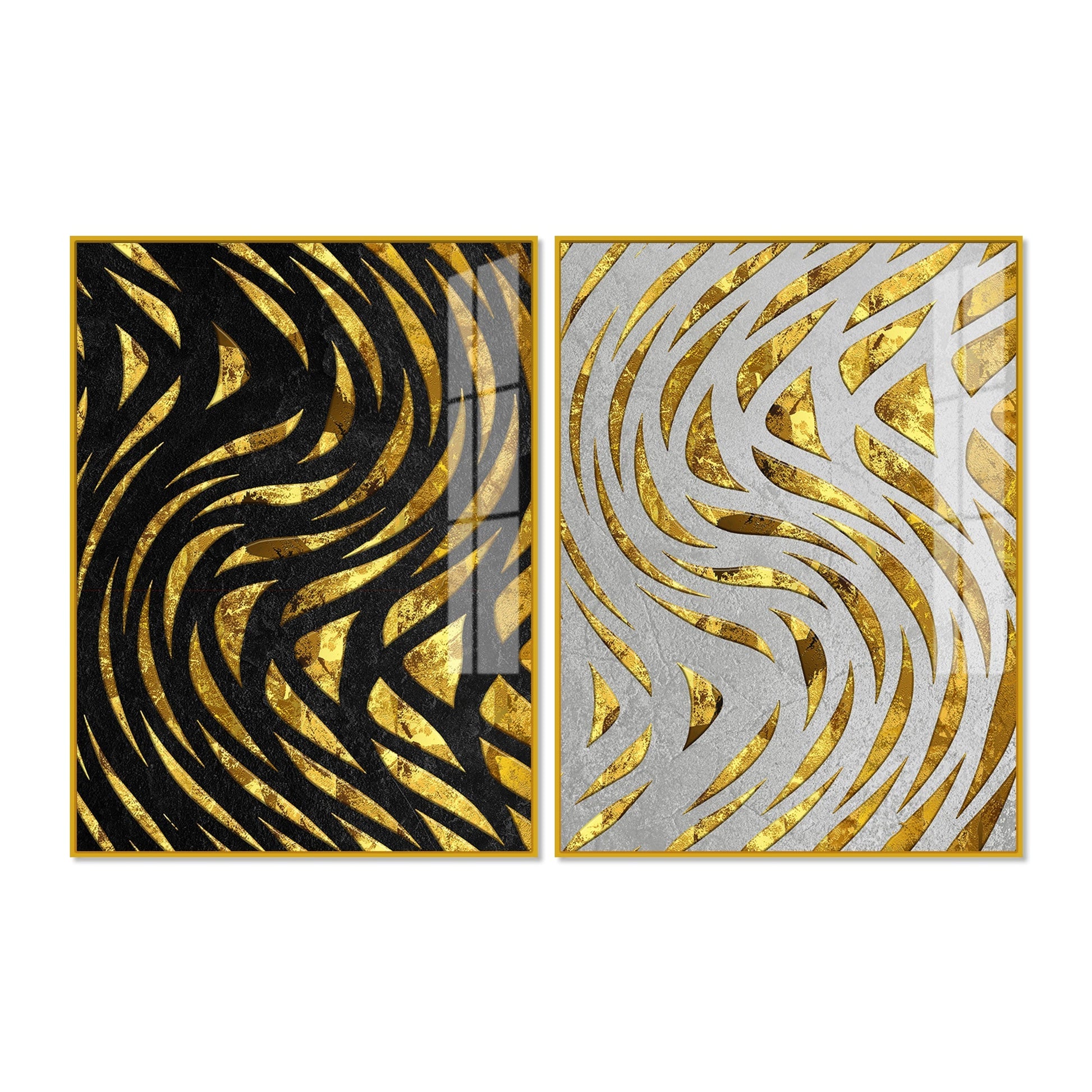 Golden Patterns Acrylic Floating Wall Painting Set of 2