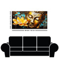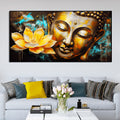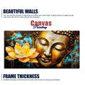 Golden Statue of Buddha with Lotus Flowers Canvas Wall Painting