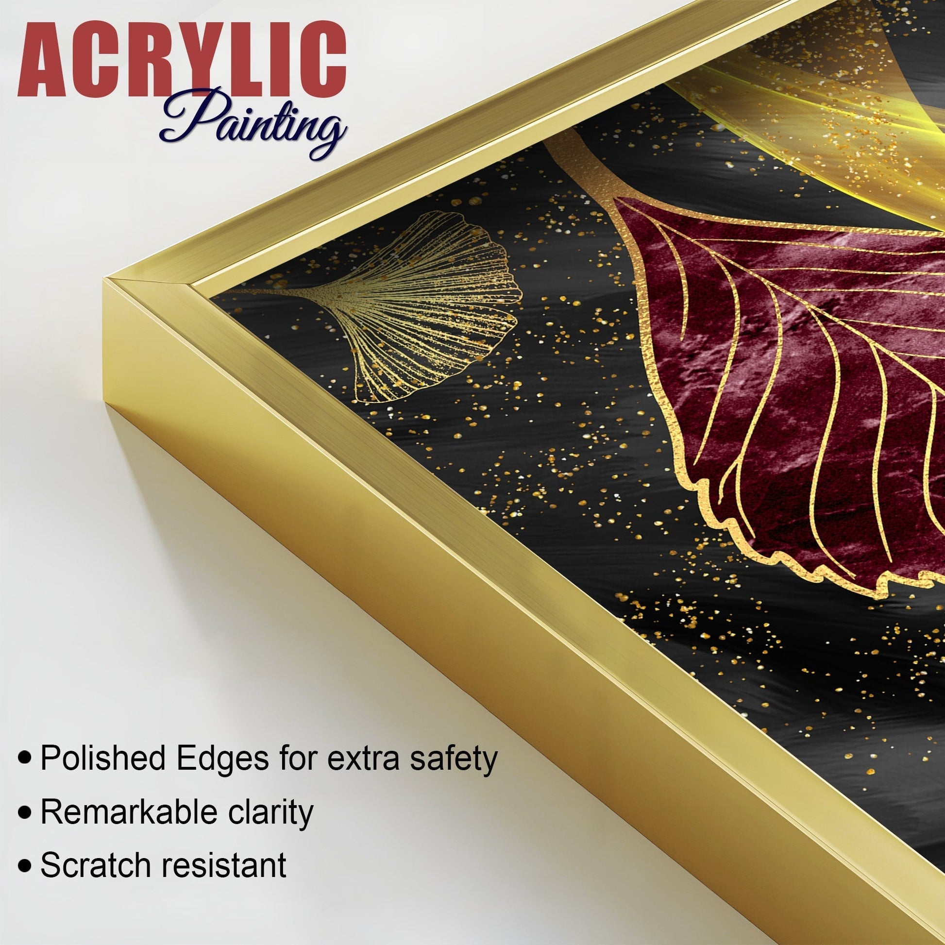 Green and Red Leaf Shape Acrylic Floating Wall Painting Set of 2