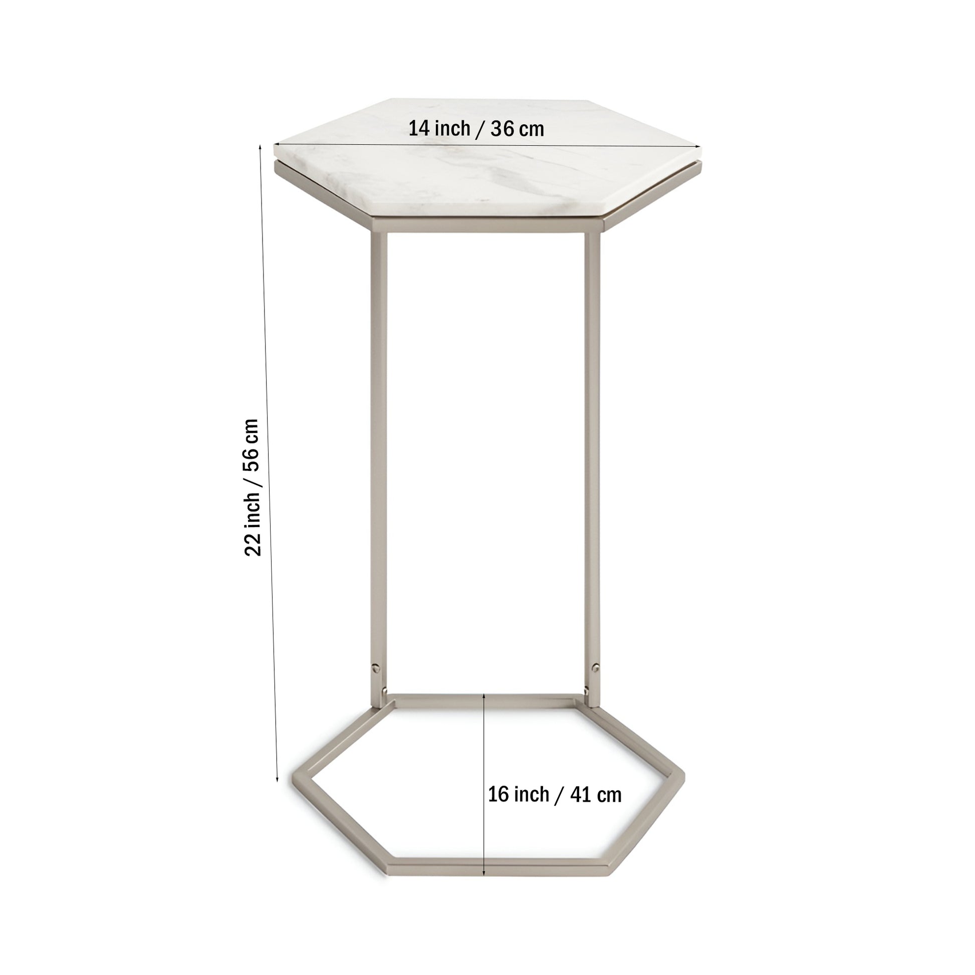 Hexagon Shape Marble Top Silver Stand Side Table
