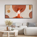 Lady Wearing Orange Hat and Dress Premium Wall Painting