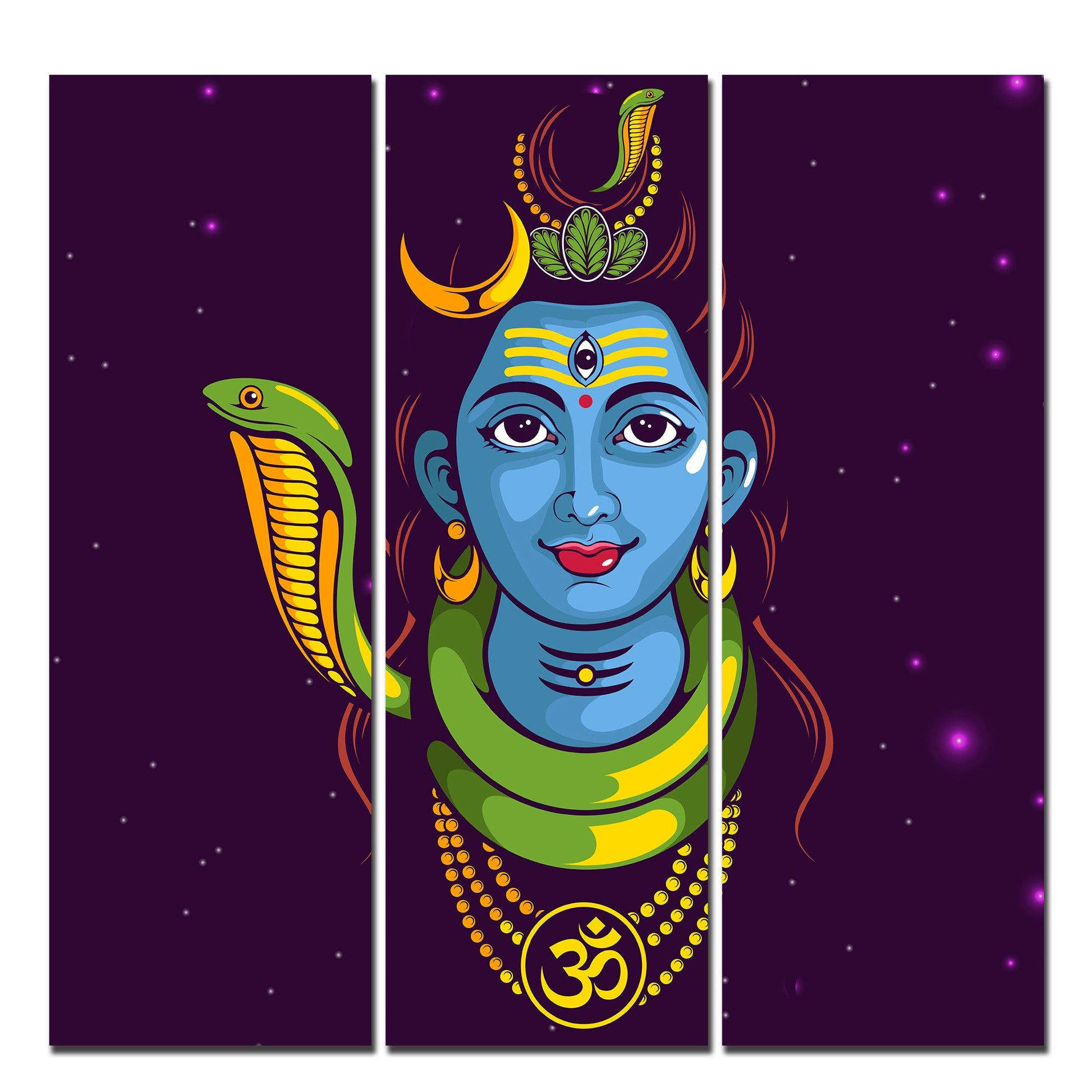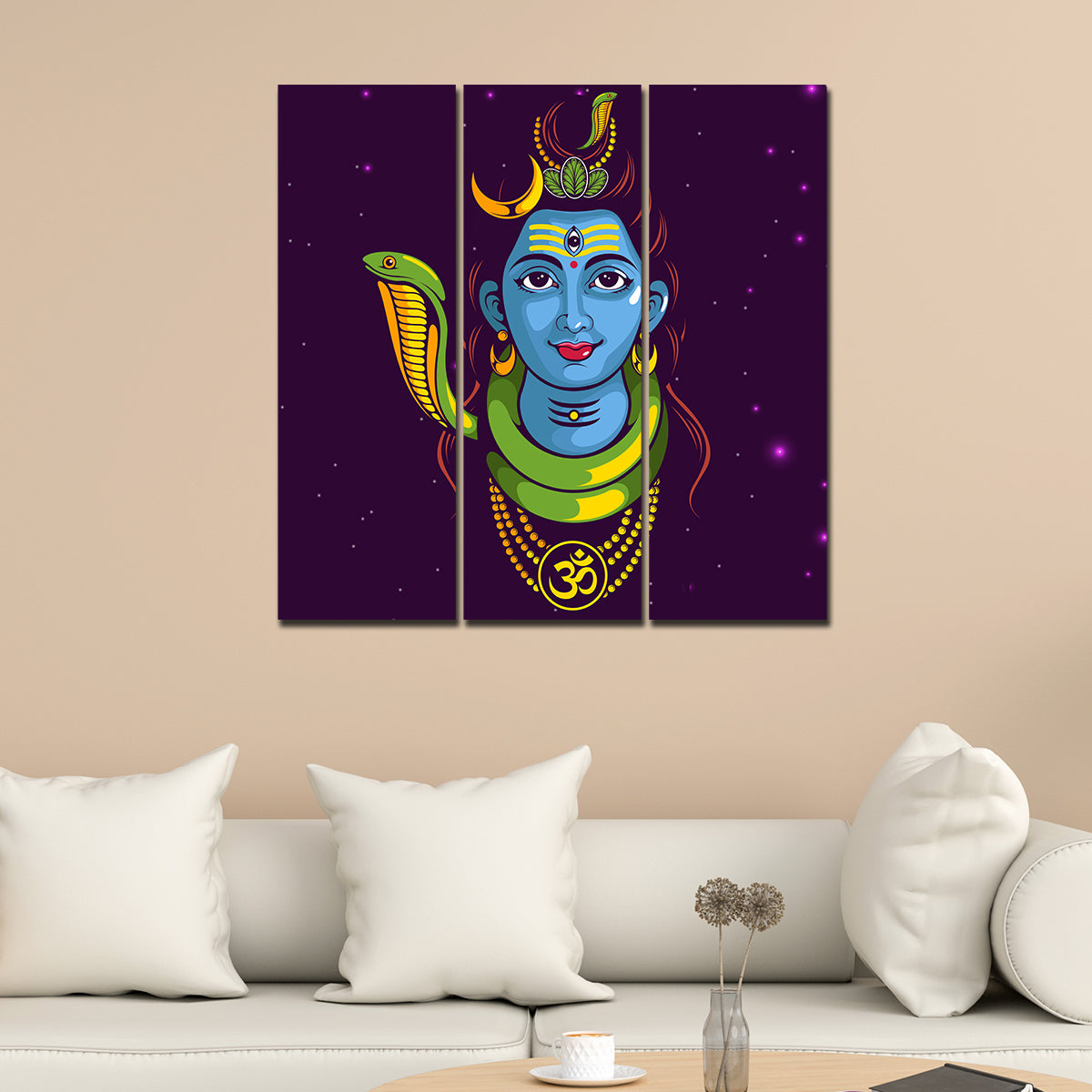 Lord Bholenath Canvas Wall Painting of Three Pieces