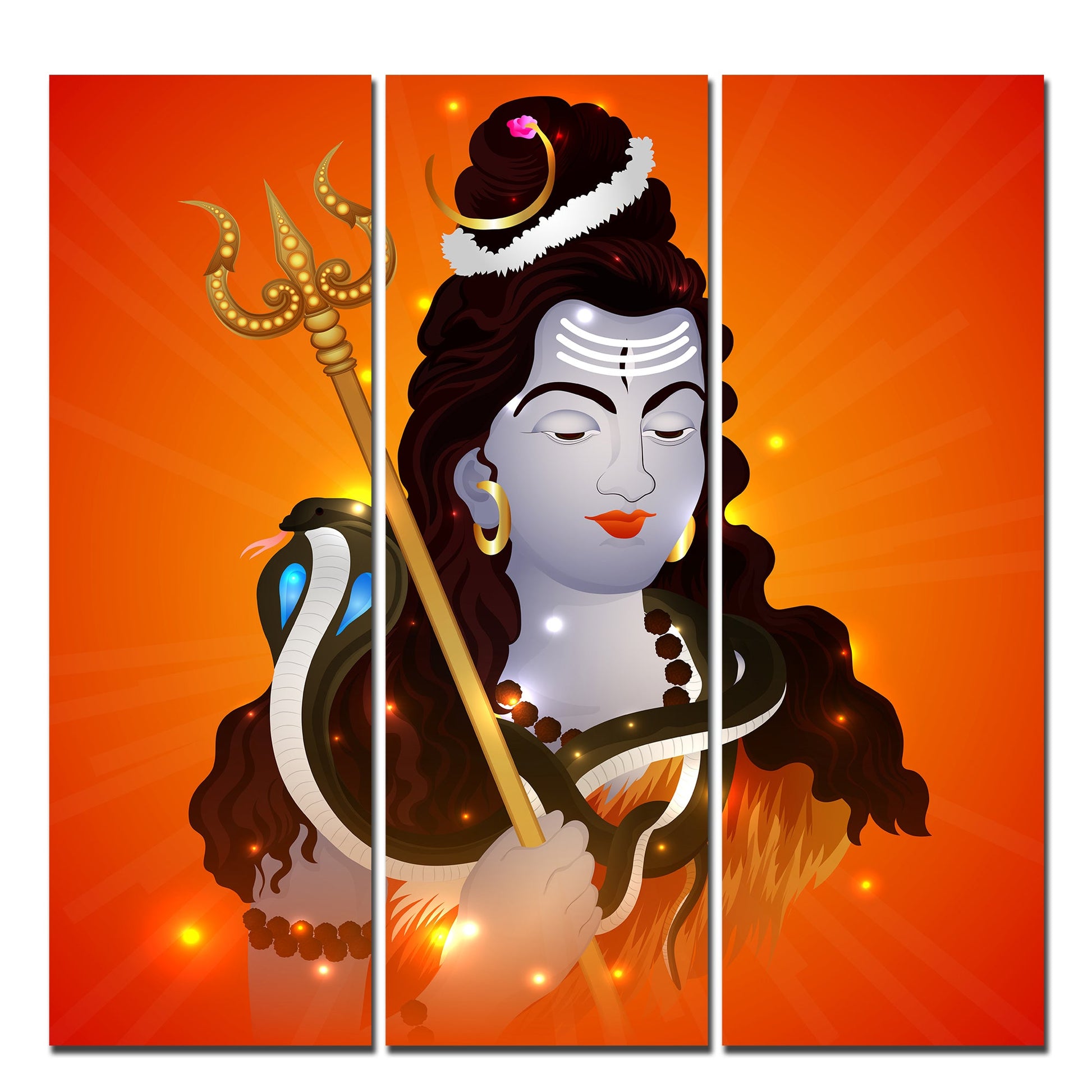 Lord Shankar Canvas Wall Painting of Three Pieces