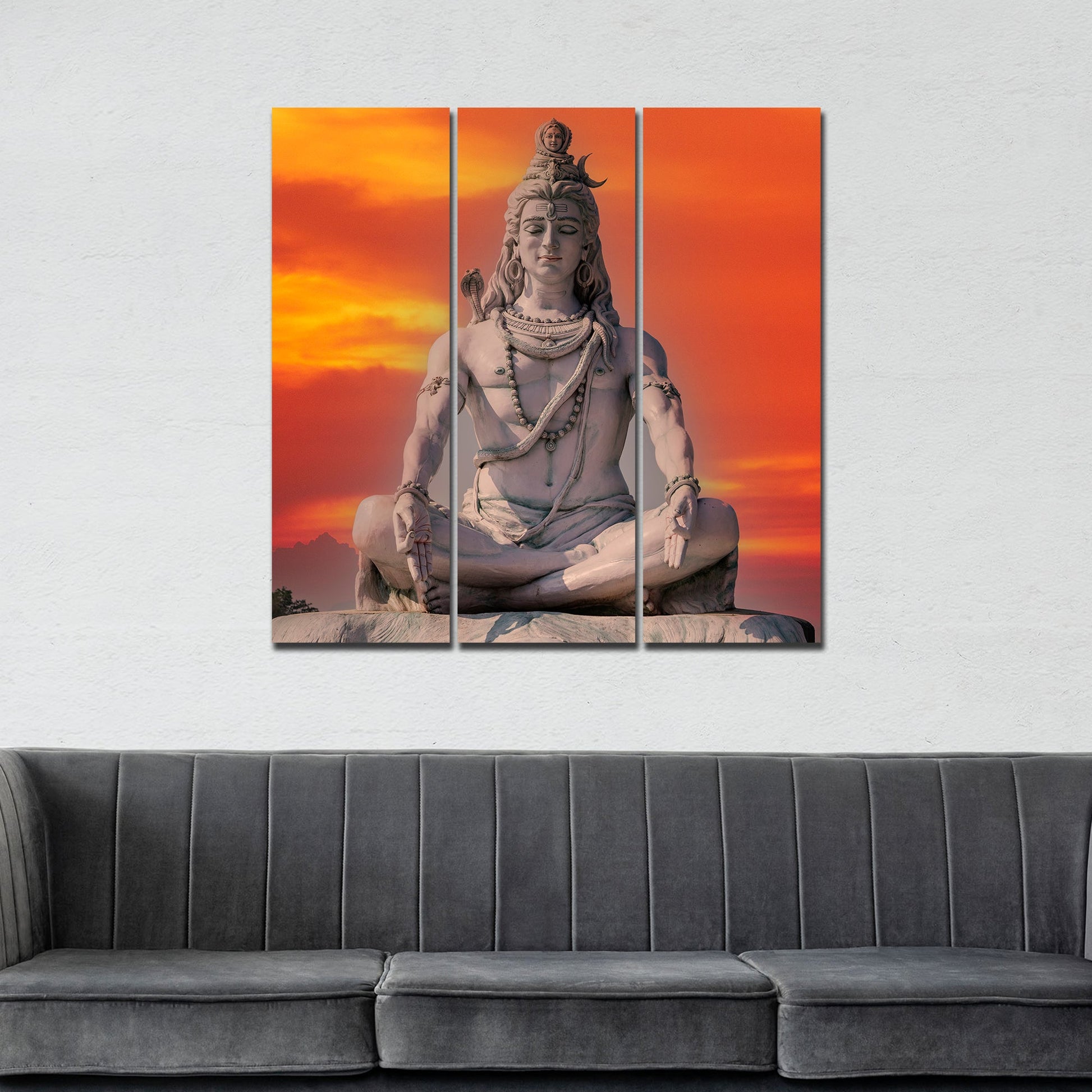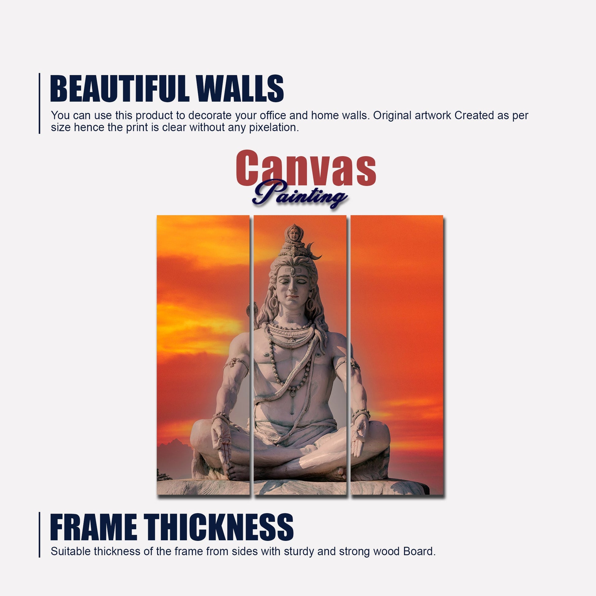Lord Shiva Sculpture Canvas Wall Painting of Three Pieces