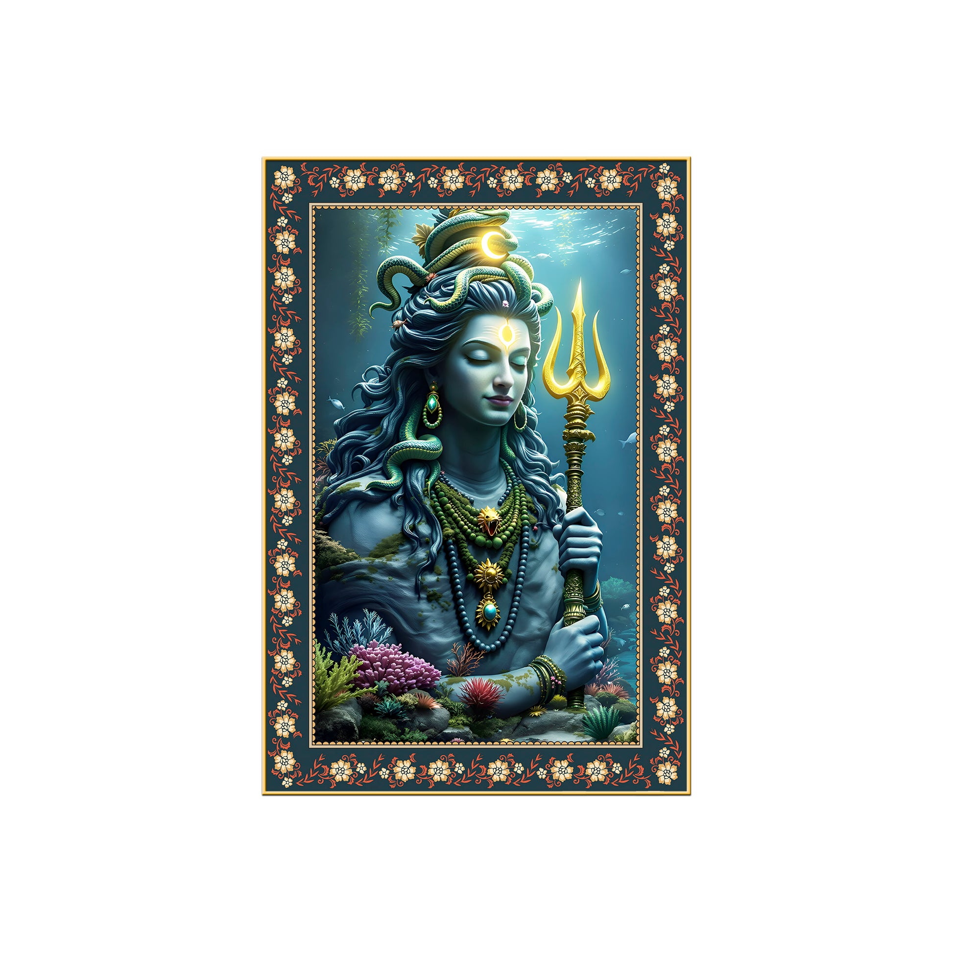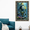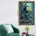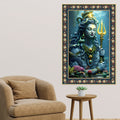 Majestic Shiva with Trident Floral Border Vertical Wall Painting