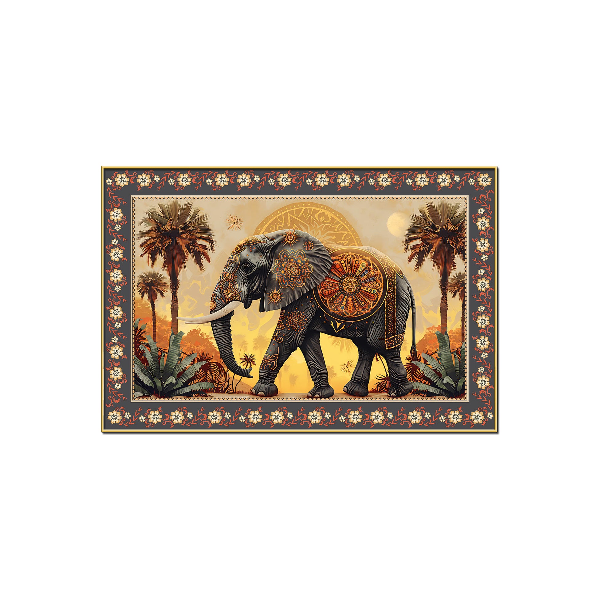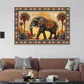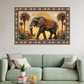 Mandala Design Elephant in Sunset Floral Border Canvas Wall Painting