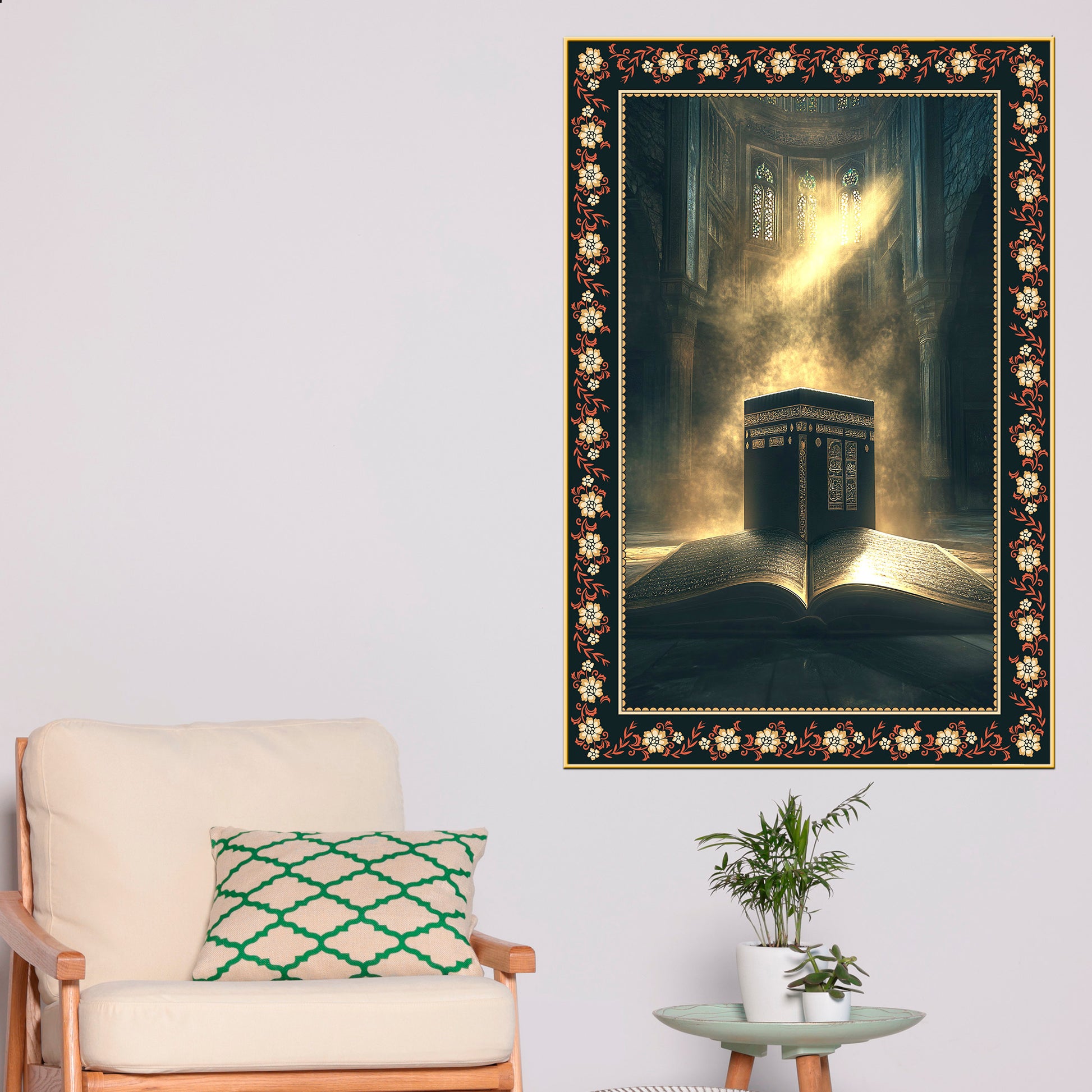 Mecca Holy Mosque Islamic Floral Border Vertical Wall Painting
