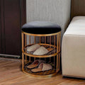 Metal Frame Shoe Bench Rack with Black Padded Seat