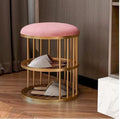 Metal Frame Shoe Bench Rack with Pink Padded Seat