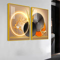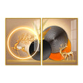Modern Abstract Golden Deer Acrylic Art Floating Wall Painting Set Of 2