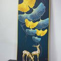 Modern Abstract Green Leaf with Deer Premium Canvas Wall Painting