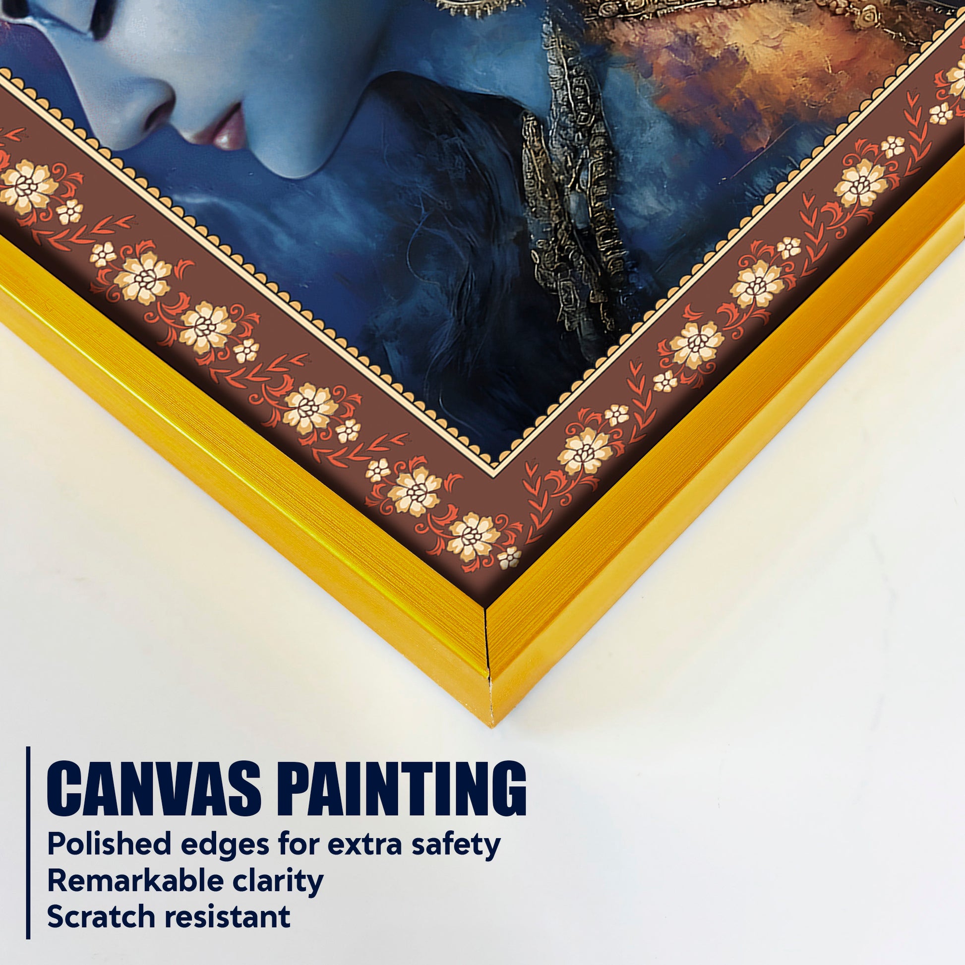 Modern Art Shiva Parvati Floral Border Vertical Wall Painting
