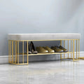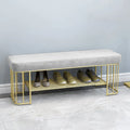 Modern Gray Velvet Upholstered Bench with Shoe Rack Storage