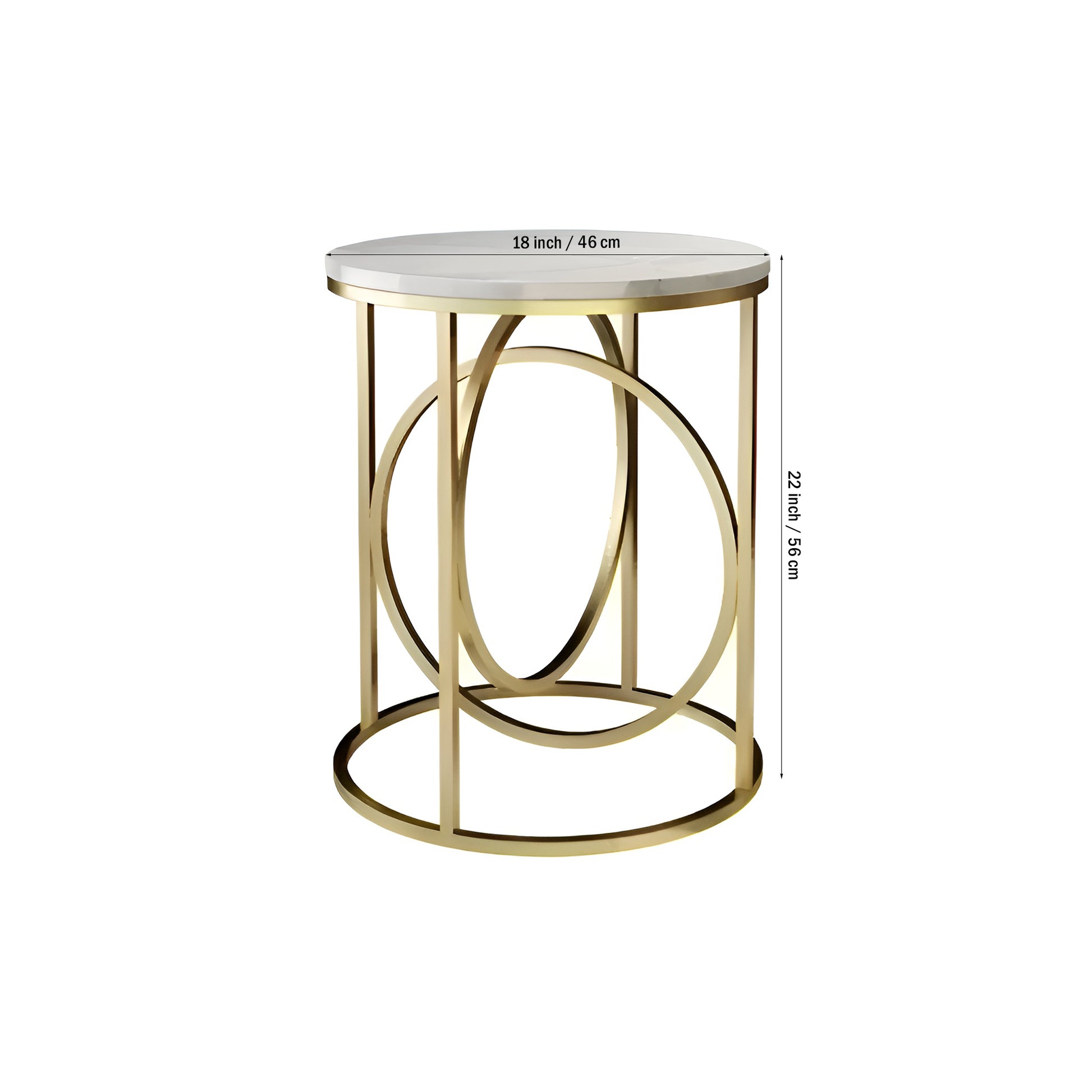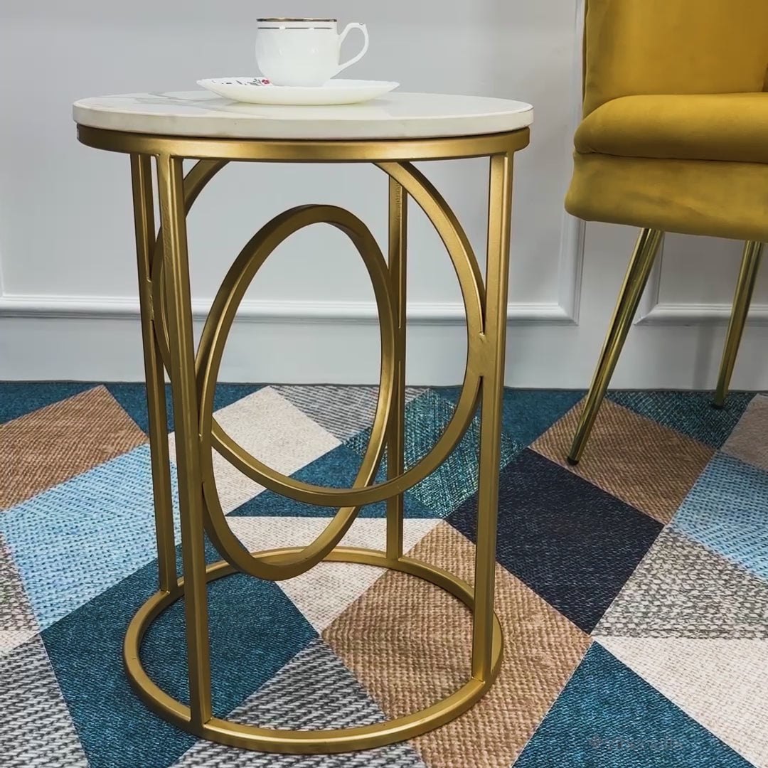 Modern White Marble Round Shaped Side Table with Golden Metallic Side