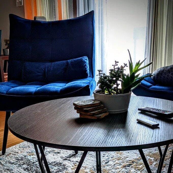 Navy Blue Plush Velvet Accent Chair With Footrest & Cushion