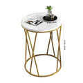 Premium Designer Round Shaped Golden Artistic Side Table with White Marble