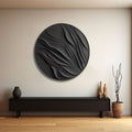 Round Black 3D Wall Art Panel with Flowing Abstract Design