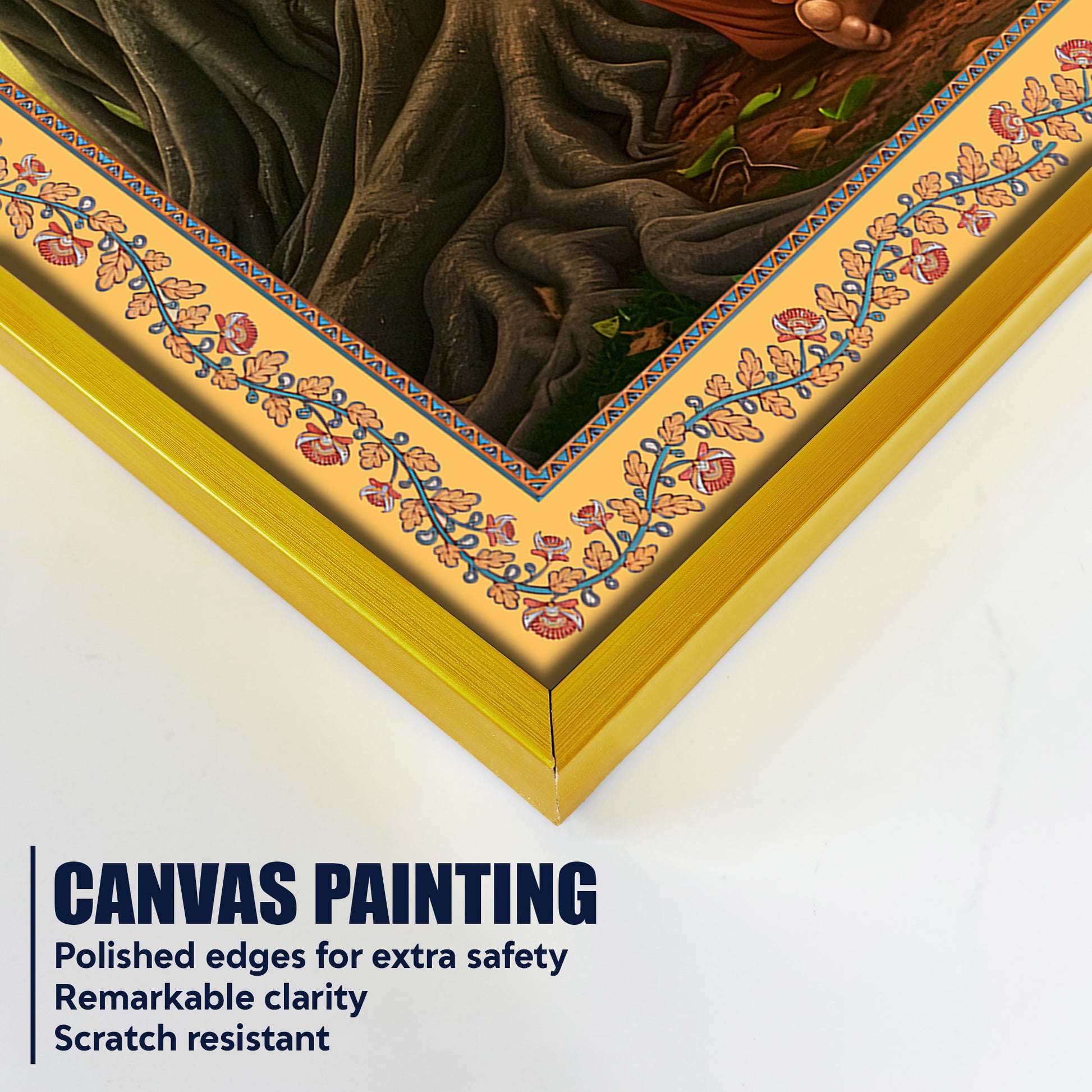 Sai Baba Under the Tree Floral Border Canvas Wall Painting
