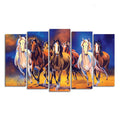 Seven Horses Set of Five Pieces Premium Canvas Wall Painting