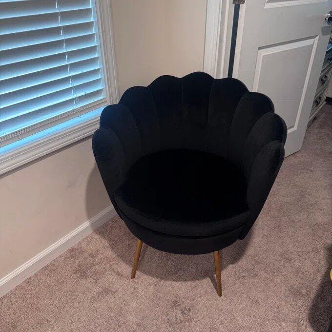 Shell Motif Luxury Design Black Velvet Accent Chair