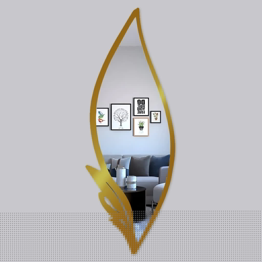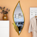 Slender Big Leafs Vanity Mirror with Metallic Golden Finish Frame