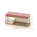 Upholstered Pink Velvet Luxurious Golden Shoe Rack Bench Organizer