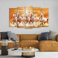 White Running Seven Horses 5 Pieces Premium Wall Painting